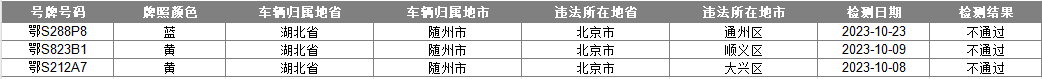 2023年10月份,经其它地市生态环境部门对在用机动车尾气排放进行遥感检测及路检路查,发现以下3台(次)随州籍车辆异地尾气排放检测不合格。根据《中华人民共和国大气污染防治法》等相关法律、法规规定,现将车辆明细予以公示,请车辆驾驶员或车主(车属单位)自公示发布之日起10个工作日内,对车辆维修并通过排放检验,确认后方可上道路行驶。