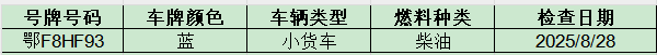 2025年8月,经随州市生态环境部门对在用机动车尾气排放进行遥感检测,发现以下1台(次)非随州籍车辆尾气排放不合格(见下图)。根据《中华人民共和国大气污染防治法》等相关法律、法规规定,现将车辆明细予以公示,请车辆驾驶员或车主(车属单位)自本告知发布之日起10个工作日内,对车辆进行维修并通过尾气排放检验,确认合格后方可上道路行驶。